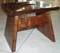 Anyone with small children would appreciate having a stool like this. There were no metal fasteners used in the fabrication of this piece. All the joints are blind mortised and glued. All the parts are one piece solid walnut. The finish is gloss polyurethane for durability. This stool will last many generations. |
